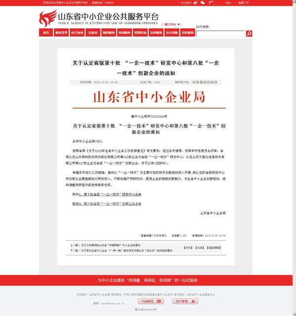 近日,《山東省中小企業(yè)局文件(魯中小企局字[2015]64號)》公布了省級第十批 “一企一技術”研發(fā)中心和第八批“一企一技術”創(chuàng)新企業(yè)名單,泰安麥豐新材料科技有限公司通過市局推薦、省局初審和專家委員會嚴格評審,成功獲評省級“一企一技術”研發(fā)中心。